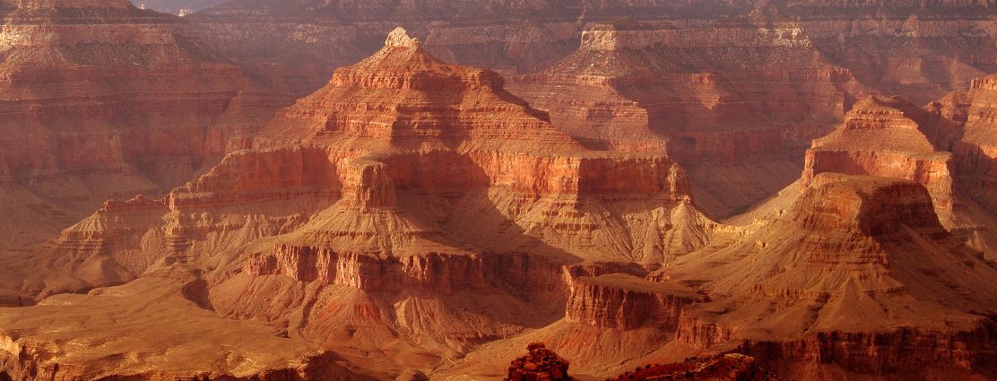 Een van de meest spectaculaire natuurverschijnselen van Amerika is de Grand Canyon. Miljoenen jaren van erosie door de onstuimige Colorado rivier hebben deze wereldberoemde kloof in het noordwesten van Arizona gevormd. De enorme canyon is ongeveer 446 kilometer lang en 1600 meter diep. En hoewel de breedte varieert tussen de 15 en 29 kilometer kun je vanwege de lage luchtvochtigheid vrijwel overal de overkant zien. De wanden bestaan uit vele lagen van het kenmerkende rode gesteente van het Colorado plateau, die geheimen over de ontstaansgeschiedenis van de kloof prijsgeven.