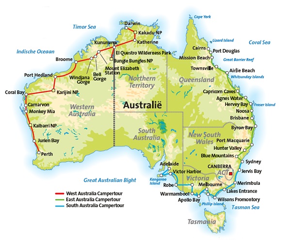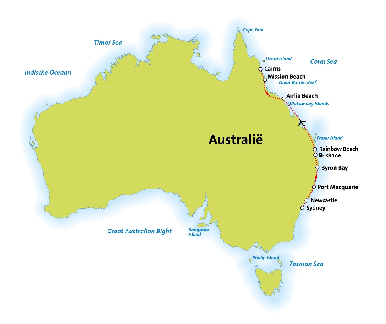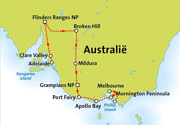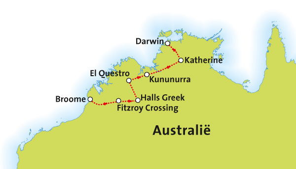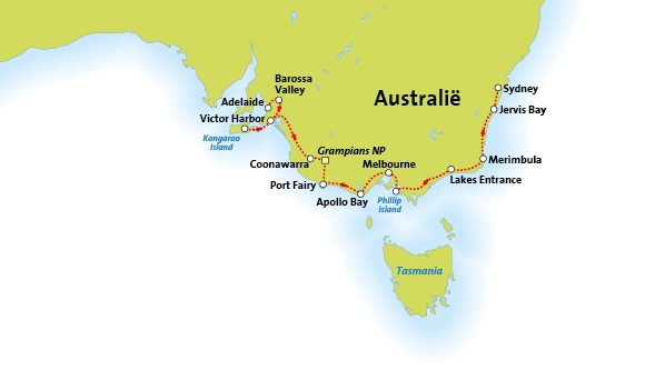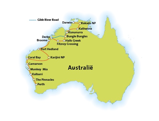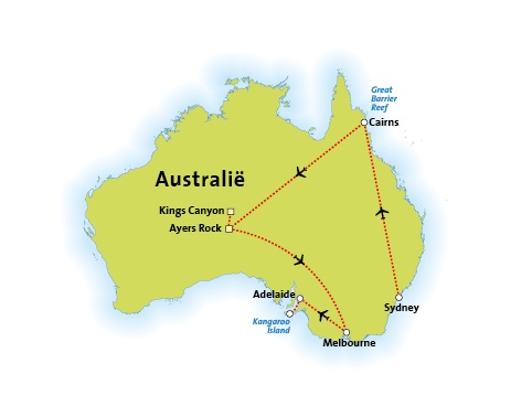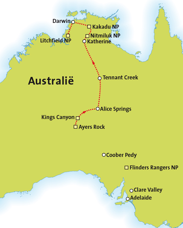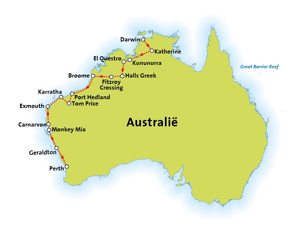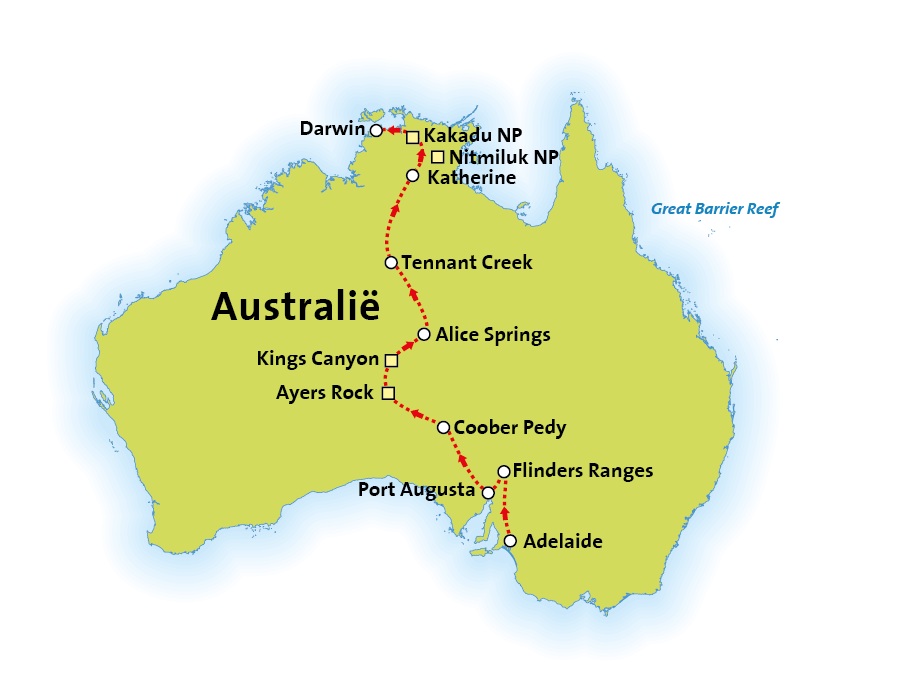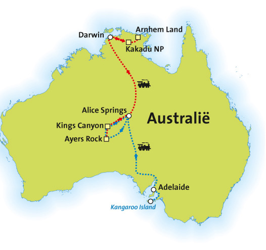 Onderstaande routekaartjes helpen u op weg om de rondreis door Australië te kiezen die het beste past bij uw wensen. Onder elk kaartje kunt u een link aanklikken naar uitgebreide informatie over de rondreis, inclusief het dag tot dag programma en de prijzen.