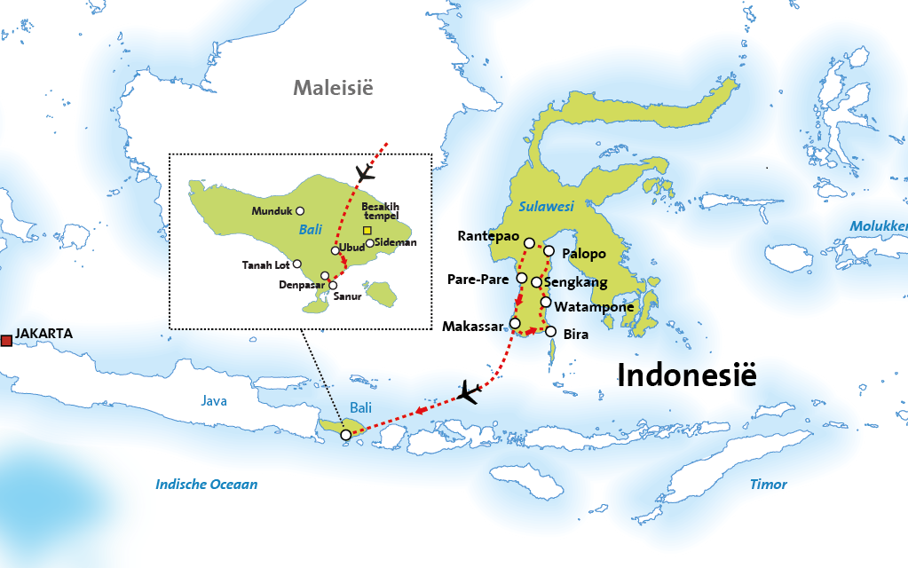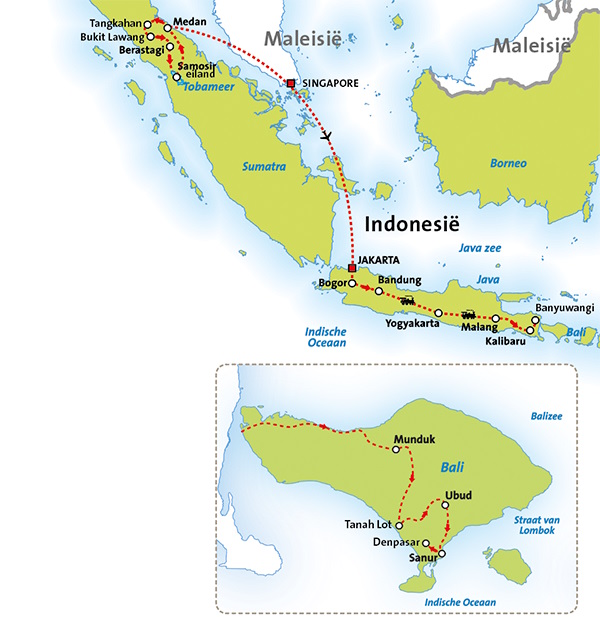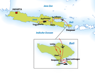 Onderstaande routekaartjes helpen u op weg om de rondreis door Indonesië te kiezen die het beste past bij uw wensen. Onder elk kaartje kunt u een link aanklikken naar uitgebreide informatie over de rondreis, inclusief het dag tot dag programma en de prijzen.