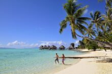 Bij Matira Point, aan het mooiste zandstrand van Bora Bora, op ca. 25 minuten varen van de luchthaven. Bora Bora ligt op 50 minuten vliegen van het hoofdeiland Tahiti. Het eiland is een tropisch paradijs met turquoise wateren en groene vulkanische toppen. Een oase van rust in een lagune, beschermd door een spectaculair koraalrif.