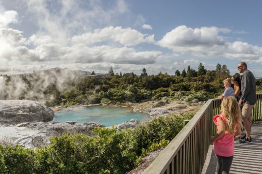 Dag 5-6Coromandel - Rotorua (223 km)Via bochtige weggetjes rijdt u door de Bay of Plenty, door een landschap met vele boomgaarden met kiwifruit. Op weg naar Rotorua kunt u bij Matamata de opnamelocatie van de Hobbit films bezoeken. Vervolgens rijdt u naar Rotorua, waar u twee nachten verblijft. De werkingen van de natuur zijn hier vaak adembenemend. Hier ligt het Whakarewarewa Thermal Reserve, waar u een begeleide wandeling kunt maken langs borrelende modderpoelen en spuitende geisers. Wij raden u aan om 's avonds een Maori show en Hangi bij te wonen, een op traditionele wijze bereid Maori diner. Tijdens uw verblijf bezoekt u de National Kiwi Hatchery. U krijgt hier een rondleiding van 45 minuten en leert alles over het nationale icoon van Nieuw-Zeeland in deze kiwi broederij waar meer dan 2100 kiwikuikens zijn uitgebroed. Na de tour kunt u een een kijkje nemen in het interactieve kiwihol. Dag 7Rotorua - Napier (226 km)Via de Thermal Explorer Highway rijdt u in zuidelijke richting naar Lake Taupo, gelegen aan het gelijknamige meer. Indien u tijdig vertrekt kunt u nog een bezoekje brengen aan Wai-O-Tapu Thermal Wonderland, een mooi park met vele thermische activiteiten. Wilt u iets spannenders ondernemen dan kunt u bij de Huka Falls een opwindende jetboat tour maken. Daarna vervolgt u uw weg naar het bekende wijngebied Hawke's Bay, waar Napier is gelegen. Een aanrader in Napier is een fietstochtje met uw gezin door deze ‘Art Deco' stad. Napier werd in 1931 getroffen door een zware aardbeving. U ziet hoe de stad weer is opgebouwd in de bijzondere bouwstijl Art Deco. Dag 8-9Napier - Wellington (316 km)Vanuit Napier rijdt u naar Wellington voor twee overnachtingen. U kunt de hoofdstad van Nieuw-Zeeland op uw gemak verkennen. Tijdens uw verblijf is een introductietour van 1 uur door het Te Papa museum inbegrepen. Deze rondleiding biedt een overzicht van de interactieve tentoonstellingen, kunstvoorwerpen en historie van het museum. U ziet het culturele erfgoed van de Maori en de koloniale geschiedenis. Ook kunt u een wandeltour door de stad maken of de Weta Cave workshop bezoeken waar de creaties uit diverse films zoals de Hobbit gemaakt worden. Tevens is er in Wellington een ruime keuze aan restaurants en cafés, art galleries en winkels. Downtown Wellington en de waterfront zijn eenvoudig te voet te verkennen. Dag 10-11Wellington - Marlborough (ferry overtocht + 25 km)U vaart op de Interislander ferry naar het Zuidereiland. Deze overtocht duurt ca. 3,5 uur. Uw Go Rentals huurauto neemt u mee op de ferry. Vanuit de haven van Wellington vaart u door de Cook Strait en komt bij de prachtige Marlborough Sounds. Een uur lang vaart u door dit schilderachtige gebied met waterwegen en groene heuvels alvorens u in het pittoreske havenstadje Picton arriveert. U vervolgt uw rondreis en rijdt naar uw overnachtingsadres in Marlborough.