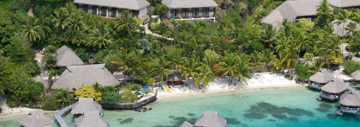 Op Bora Bora nabij Matira Beach, een van het eiland mooiste stranden. Op ca. 15-20 minuten varen vanaf de luchthaven met de gratis shuttle boot naar de Vaitape pier. Vanaf hier is het 40 minuten rijden naar het hotel.