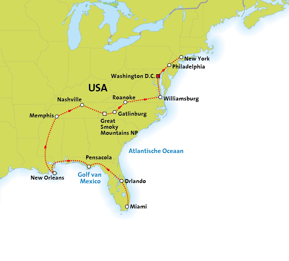 Ideale reis om in beperkte tijd een uitgebreide indruk te krijgen van Amerika. Ervaar het bruisende noordoosten, swingende zuiden en zonnige Florida, elke regio met een geheel eigen karakter!