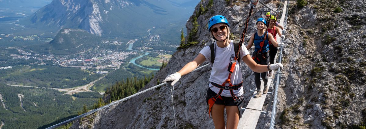 Trek vandaag een sportieve outfit aan, want jullie gaan klimmen in de Rockies. Samen met een ervaren berggids maken jullie een avontuurlijke tocht van ongeveer twee uur. Jullie maken een rit met een stoeltjeslift, klauteren over rotsen en ladders en steken een spectaculaire hangbrug over naar een prachtig uitzichtpunt. Wow! Zo zie je de Rocky Mountains vanuit een heel ander perspectief. Maak je geen zorgen over de veiligheid; je draagt een helm en wordt gezekerd aan veiligheidskabels.