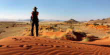 Voor zonsopgang geniet u van het ontbijt en gaat u op pad. Het hoogtepunt van de wandeling is het adembenemende uitzicht over de duinen en het landschap terwijl de zon langzaam opkomt. In de loop van de dag zal de gids enkele wonderen van de Namib aan u uitleggen – hoe de fascinerende woestijnflora overleeft, hoe het leven van insecten en reptielen zich aanpast aan de barre omgeving en hoe zoogdieren hier kunnen overleven zonder water. Tijdens de wandeling zult u zeker vele vogelsoorten spotten, maar hier leven ook grotere dieren zoals oryx, vossen, springbokken en struisvogels. Na circa vier tot vierenhalf uur wandelen en wanneer de zon op haar sterkst is, geniet u van een welverdiende lunch en heeft u tijd om een boekje te lezen of even uit te rusten in de schaduw. In de middag loopt u verder door de eindeloze duinen; tijdens zonsondergang kunt u prachtige foto’s maken (circa twee tot tweeënhalf uur). (O,L,D)