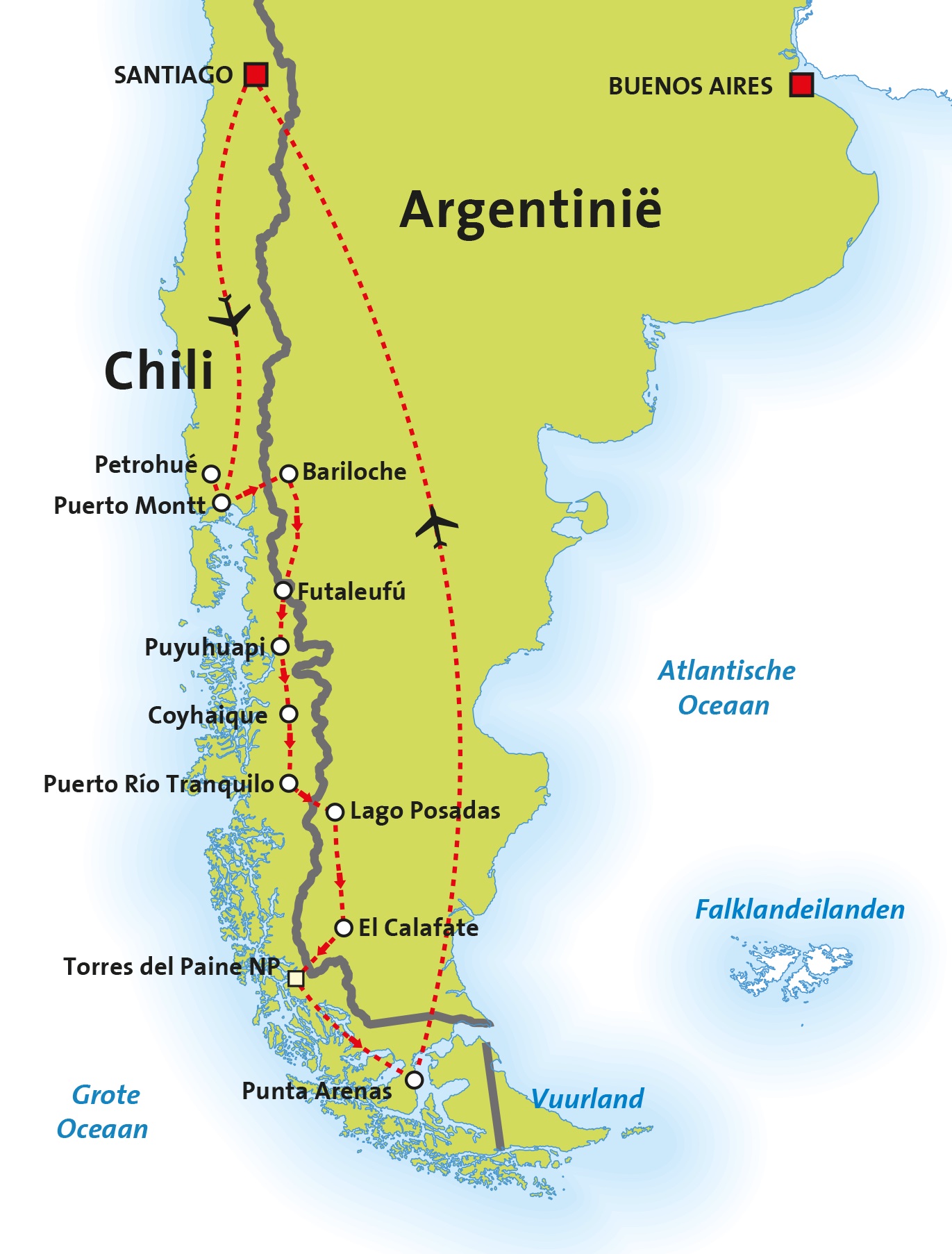 ’s Ochtends vertrekt u voor een prachtige rit van ca. 7 uur door de Andes. In het charmante stadje Frutillar vindt u net als in Puerto Varas veel in Duitse stijl gebouwde huizen en heeft u een prachtig uitzicht op de Osorno vulkaan. Vervolgens passeert u het Puyehue Nationaal Park, een prachtig gebied met dichte bossen, meren, vulkanen, rivieren en watervallen. Bij Paso Cardenal Samoré gaat u de grens over naar Argentinië. Hier moet u mogelijk wat tijd besteden aan grensformaliteiten, dus zorg ervoor dat u alle benodigde documenten bij de hand hebt. Na het passeren van de grens rijdt u Argentinië binnen en betreedt u het Nahuel Huapi Nationaal Park. Dit park is één van de oudste en grootste nationale parken van Argentinië en biedt een overvloed aan natuurschoon, waaronder meren, bergen en bossen.