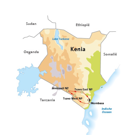 Tijdens een safari in de nationale parken Tsavo West, Tsavo East en Amboseli gaat u op zoek naar wilde dieren. Aansluitend geniet u van een strandvakantie bij Mombasa.
