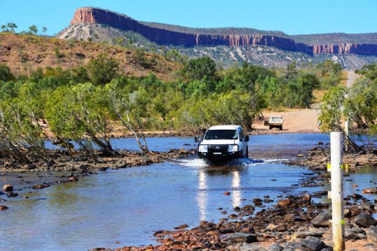 Dag 13Broome – Bell Gorge (528 km)Vandaag begint u aan het eerste gedeelte van uw avontuurlijke en alternatieve route over de 4WD Gibb River Road. De Kimberleys wordt ook wel het laatste stukje ‘onbekende' wildernis genoemd. Het heeft een spectaculair landschap met kloven, watervallen en grotten. Vanuit Broome rijdt u naar Derby, waar zich de beroemde Boab Prison Tree bevindt. Vervolgens bereikt u het werkelijke begin van de Gibb River Road, die u naar uw eerste overnachtingsplaats leidt. Gelegen in Aboriginal land heeft u hier prachtig uitzicht op de King Leopold bergrug. Onderweg kunt u Windjana Gorge National Park of Tunnel Creek National Park bezoeken. Dag 14Bell Gorge – Mount Elizabeth (154 km)Op weg naar Mount Elizabeth passeert u o.a. Bell Gorge, midden in de Kimberleys en een heerlijke plek om te zwemmen, en Barnett River Gorge. Aangekomen bij uw overnachtingsplaats, een cattle station dat nog in bedrijf is, kunt u deelnemen aan een van de vele activiteiten op deze boerderij of de omgeving verder verkennen. Dag 15-16Mount Elizabeth – El Questro (327 km)Vandaag rijdt u naar El Questro, van origine een boerderij op een stuk land dat van noord naar zuid 80 km en van oost naar west 60 km groot is. U vindt hier diepe kloven, prachtie rotsformaties, regenwoud en watervallen. U heeft een volle dag om te genieten van de gevarieerde en ongerepte natuurpracht. Het is een echte aanrader om de El Questro Gorge wandeling te maken of te ontspannen in de natuurlijke, thermale bron Zebedee Springs, gelegen tussen de oude Livistonia Palms. U verblijft twee nachten in El Questro The Station. De bungalows liggen aan de oevers van de Pentecost River. Dag 17-18El Questro – Purnululu National Park (374 km)U heeft vandaag een lange rit voor de boeg naar Purnululu National Park, dus wij raden u aan om vroeg te vertrekken. Na vertrek uit El Questro zal de onverharde weg al gauw weer plaats maken voor de asfaltweg, waarmee u het einde van de Gibb River Road bereikt. Purnululu is ook bekend onder de naam Bungle Bungles. De naam Purnululu komt van de oorspronkelijke bewoners, de Kija Aboriginals. Het betekent zandsteen. De westerlingen noemden het bij hun ontdekking Bungle Bungle, een verwijzing naar de naam van het gras dat hier groeit bundle bundle. U vindt hier de unieke rotsformaties van zandsteen in de vorm en kleur van bijenkorven. De beste manier om ze te zien is vanuit de lucht. Tevens kunt u prachtige wandelingen maken naar Cathedral Gorge en Echidna Chasm.