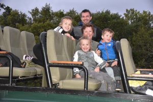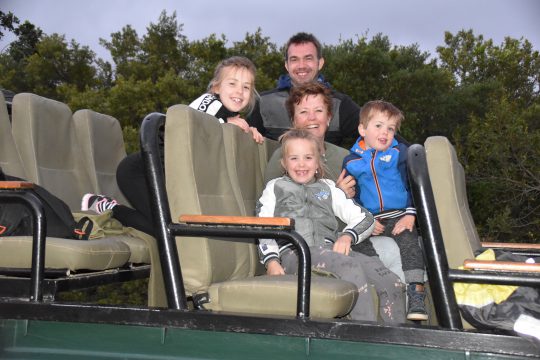Aan het einde van de middag staan we klaar voor onze eerste game-drive, spannend! Met de verrekijker, fotocamera en een fleece deken stappen we ons voertuig in. We rijden nog maar net het hek door en staan direct oog in oog met een olifant. We komen ook neushoorns tegen, ontelbare spingbokken, zebra’s en zien de giraffen. Aan het einde wacht ons nog een zogenaamde ‘sundowner’ met sap voor de kinderen, een glaasje wijn voor de volwassenen met billtong, een perfecte afsluiting van onze allereerste game-drive.