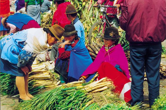 Mijn eerste stop ten zuiden van Quito is Guamote, dat op zo’n 5 uur rijden van de hoofdstad ligt. Ik verblijf hier in Inti Sisa, een bescheiden maar comfortabel gastenhuis dat mede wordt gerund door de lokale bevolking en dat gekoppeld is aan een aantal educatieve projecten. Vanuit het gastenhuis worden excursies en activiteiten georganiseerd waarbij reizigers in contact komen met de inheemse cultuur. Op donderdag is het markt in Guamote, kleurrijk en authentiek. Er wordt vee verhandeld, maar ook kleding, landbouwproducten en huisraad. Hoewel deze markt in de loop van de jaren wat meer toeristisch wordt, is deze nog voornamelijk een lokale activiteit en is het een belevenis om over deze markt te slenteren tussen de indianen in hun felgekleurde poncho’s. De producten worden aan- en afgevoerd in vrachtwagens. Het laden en lossen vond ik minstens zo leuk om te bekijken als de markt zelf.
