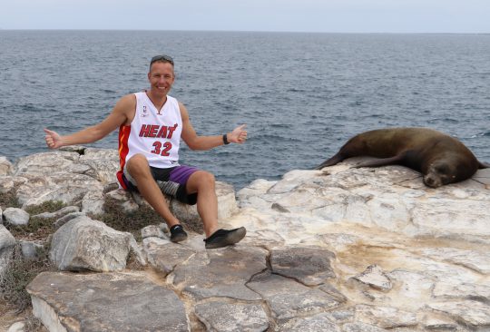 Op het laatste eiland van onze reis, San Cristobal, verblijven we wederom twee nachten. Hotel Blue Marlin ligt vlakbij de restaurantjes en het haventje. We struikelen over de zeeleeuwen en zien eindelijk ook vele Blauwvoet Jan van Genten. Bij Los Lobos mogen we nogmaals snorkelen met onze nieuwe vrienden, de zeeleeuwen. Ze scheren rakelings langs ons en genieten net zoveel van onze aanwezigheid als andersom. We zullen ze missen!
