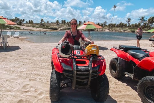 Vanuit Amsterdam vliegen we naar Lissabon. Hier hebben we een overstap van 8 uur. Dat is allesbehalve vervelend, want zodra we geland zijn kopen we voor een paar euro een dagkaartje voor het openbaar vervoer en gaan we de stad in. We slenteren door de smalle straatjes en historische wijken, genieten van mooie uitzichtpunten, maken ritjes in de iconische gele trams en proeven het typisch Portugese gebakje ‘pastel de nata'. Voor we het weten, is het alweer tijd om terug te keren naar de luchthaven. Vanuit Lissabon vliegen we in 7 uur naar Natal, de hoofdstad van de Braziliaanse staat Rio Grande do Norte. Feestelijke aankomstAls we aankomen in Natal worden we hartelijk ontvangen door onze gids Nelson, die ons staat op te wachten met een fles champagne. Wat een heerlijk begin van onze reis door Brazilië! Natal wordt ook wel de stad van de zon genoemd en staat bekend om de fijne stranden en mooie zandduinen. Dat belooft veel goeds. Met quads crossen & cocktails op een boot tijdens de zonsondergangWe rijden in een uurtje naar het kleine plaatsje Maracajaú, ten noorden van Natal. Hier bezoeken we de beachclub Parrachos waar je uiteraard lekker kunt relaxen. Maar ze organiseren hier ook verschillende excursies. Wij gaan vandaag quad rijden door de duinen. Gelukkig kunnen we eerst nog even oefenen en dat gaat goed, dus op naar de duinen! We beginnen rustig maar na een tijdje, crossen we lekker de heuvels op en af. En wat een prachtig gebied is dit. Vanuit de duinen rijden we zo het strand op en komen we tot dicht bij de golven. Na een heerlijke lunch met verse vis en kreeft, maken we ons klaar voor een boottocht. Er is geen pier, dus met onze spullen boven ons hoofd lopen we zo de zee in en de boot op. Na een tijdje gaat de boot voor anker en springen wij met een snorkelset het water in. Als we terug op de boot klimmen, worden er lekkere cocktails voor ons klaargemaakt. Terwijl de zon ondergaat, varen we terug naar de beachclub. Ik had geen betere manier kunnen bedenken om de dag te eindigen.