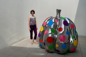 Al maanden voor aanvang van deze reis had ik kaarten besteld voor het Jajoy Kusama Museum. Deze Japanse kunstenares heeft als bijnaam de noppenkoningin en zij fascineert mij enorm. Voor het bezoek aan het museum gelden strikte regels, zoals dat alleen maar in Japan kan. Je krijgt toegang voor een vast tijdstip en moet een half uur van tevoren aanwezig zijn. Dan beweeg je je in maximaal 90 minuten van beneden naar boven over de vier etages met indrukwekkende, kleurrijke werken, waarvan veel met de typerende noppen en herhaalde patronen. Ook zijn er veel pompoenen (zie foto) en spiegels met een thema van oneindigheid, waar Kusuma bekend om is. Uiteindelijk kom je uit op het dak en ga je met de lift weer naar beneden. Van mij had dit museum tien keer zo groot mogen zijn; ik vond het magisch!