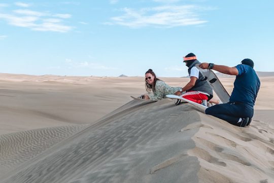 Het kleine dorpje Huacachina staat bekend om zijn unieke ligging rond een natuurlijke oase midden in een woestijn. Hier stappen we in een 4×4 buggy en krijgen we de vraag: ‘Wil je snel of langzaam?’. Daar hoeven we niet lang over na te denken. Snel natuurlijk! In het wagentje crossen we als een gek door de betoverende zandduinen. Onderweg wordt er verschillende keren gestopt en komen de sandboards tevoorschijn. Als de chauffeur de sandboard met de punt over de rand van de hoge duintop heeft gelegd, ga ik er op mijn buik op liggen en glijd ik in volle vaart naar beneden. Wat een gave ervaring!