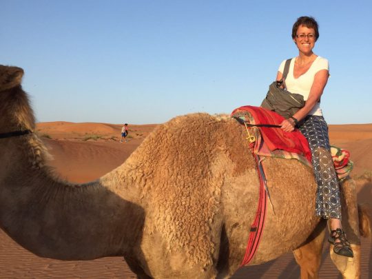Het volgende hoogtepunt is de woestijn. We slapen in een tent maar wel met echte bedden en zelfs een eigen badkamer. Hier gaan we met een gids in een andere auto een “dune bashing” rit maken. Het is net een Efteling attractie maar dan echt, via de hoge duinen storten we met de 4WD de diepte in. Als afsluiter van deze trip stoppen we bovenop een hoge duin voor de zonsondergang. Zodra het donker is zie je letterlijk 1001 sterren aan de hemel staan. De volgende morgen staan om 05.00 uur de dromedarissen al klaar waarmee we een tochtje gaan maken. Lekker een beetje hobbelen door de woestijn en de zon weer zien opkomen.