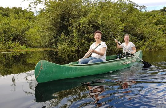 De volgende ochtend sluiten wij ons bezoek aan de Pantanal af met één van meest bijzondere kanotochten die we ooit gemaakt hebben. Rond 05.00 uur stappen we in de kano en peddelt de gids ons langzaam vooruit. Het wordt langzaam licht, je hoort de vogels zingen. De Pantanal ontwaakt. De gids weet precies hoe laat en op welk plekje hij de kano moet stil leggen. Aan de overkant van de rivier, precies tussen twee bomen in zien we de zon op komen. Wat een magisch moment! Op de terugweg zijn we wakker genoeg om met de gids mee te peddelen en komen we in de bomen langs de rivier verschillende apen tegen.