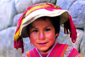 ’s Middags bezoeken we met een klein gezelschap het gehuchtje Huilloc (Willoc), waar onze Peruaanse agent een vrijwilligersproject sponsort. De indianenbevolking is hier zeer arm. Met het geld dat beschikbaar wordt gesteld, worden de dorpelingen aangemoedigd om hun oorspronkelijke cultuur zo goed mogelijk te behouden terwijl tegelijkertijd wordt gezorgd voor betere scholing en gezondheid. De schoolkinderen staan ons al op te wachten. Met hun bolle gezichtjes en de typische rode wangen van de hooglanden en gekleed in hun traditionele dracht, vormen ze een zeer folkloristisch tafereel. De kinderen doen een uitvoering van zang en dans in de openlucht. Na een rondleiding in de school nemen de dorpelingen de schoolbenodigdheden en slippers in ontvangst, die wij voor ze hebben meegenomen. Ondanks de kou, dragen de indianen in de Peruaanse hooglanden gewoon lederen of rubberen slippers. Daar kunnen wij met onze professionele Gore-tex outfits nog wat van leren.