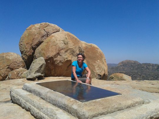 Vanuit Masvingo rijd je over de A9 via Bulawayo naar Matopos National Park. Naarmate we dichter bij Matopos komen wordt het landschap mooier: groener en met heuvels en rotsformaties. Matopos is een prachtig park met ontelbare kopjes en rotsformaties; tevens is er nog een grote populatie neushoorns. We verblijven in Big Cave Camp, net buiten het nationale park. Dit is een leuke accommodatie op een rotsheuvel gebouwd. Rondom het camp zijn diverse wandelpaden. Het camp biedt activiteiten zoals game-drives en dagtours naar Matopos National Park waar je het graf van Cecil Rhodes bezoekt en rotsschilderingen ziet, rhino tracking en mountainbiken. Onder begeleiding van een kundige gids hebben we een dagtour in een open safarivoertuig door het park gemaakt. Vanaf World’s View, waar het graf van Cecil Rhodes is, heb je een 360 graden uitzicht over het park. We hebben een wandeling naar een grot met rotstekeningen gemaakt en tenslotte zijn we op zoek gegaan naar neushoorns. En ja hoor, na lang zoeken hebben we ze gevonden en konden we de 3 vrouwtjes en een 1 mannetje te voet benaderen: een schitterende belevenis!